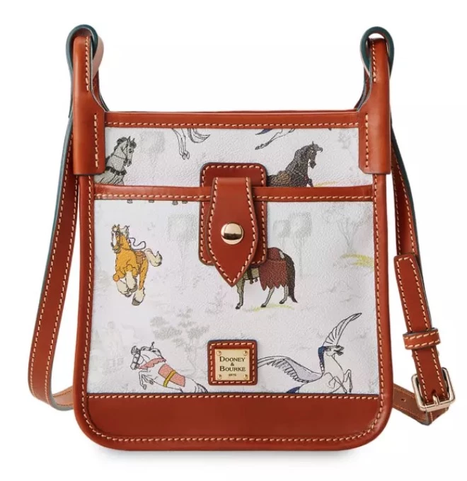 A stable of Disney’s fabled horses are featured cantering, trotting, leaping, flying, and standing on the allover print on this crossbody from Dooney & Bourke. Samson, Angus, and Pegasus are among those pictured on the coated cotton saddlebag that you’ll happily gallop around town with.