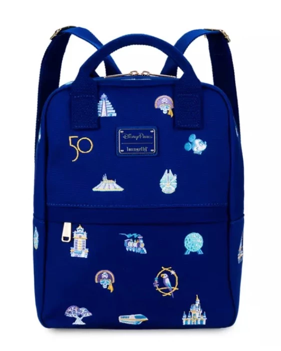 Carry around memories of ”The World’s Most Magical Celebration” wherever you go with this Walt Disney World 50th Anniversary mini backpack from Loungefly. The blue cotton canvas design is decorated allover with embroidered icons from The Happiest Place on Earth.