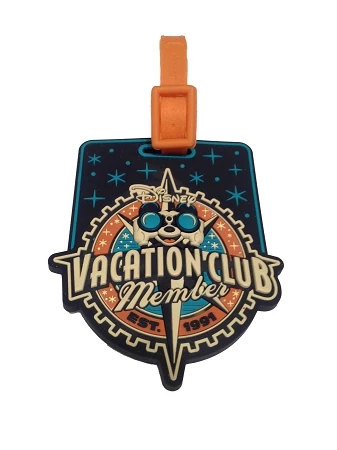 ID travel tag displays Mickey with Binoculars, and Disney Vacation Club Member Logo. A area on the back for your